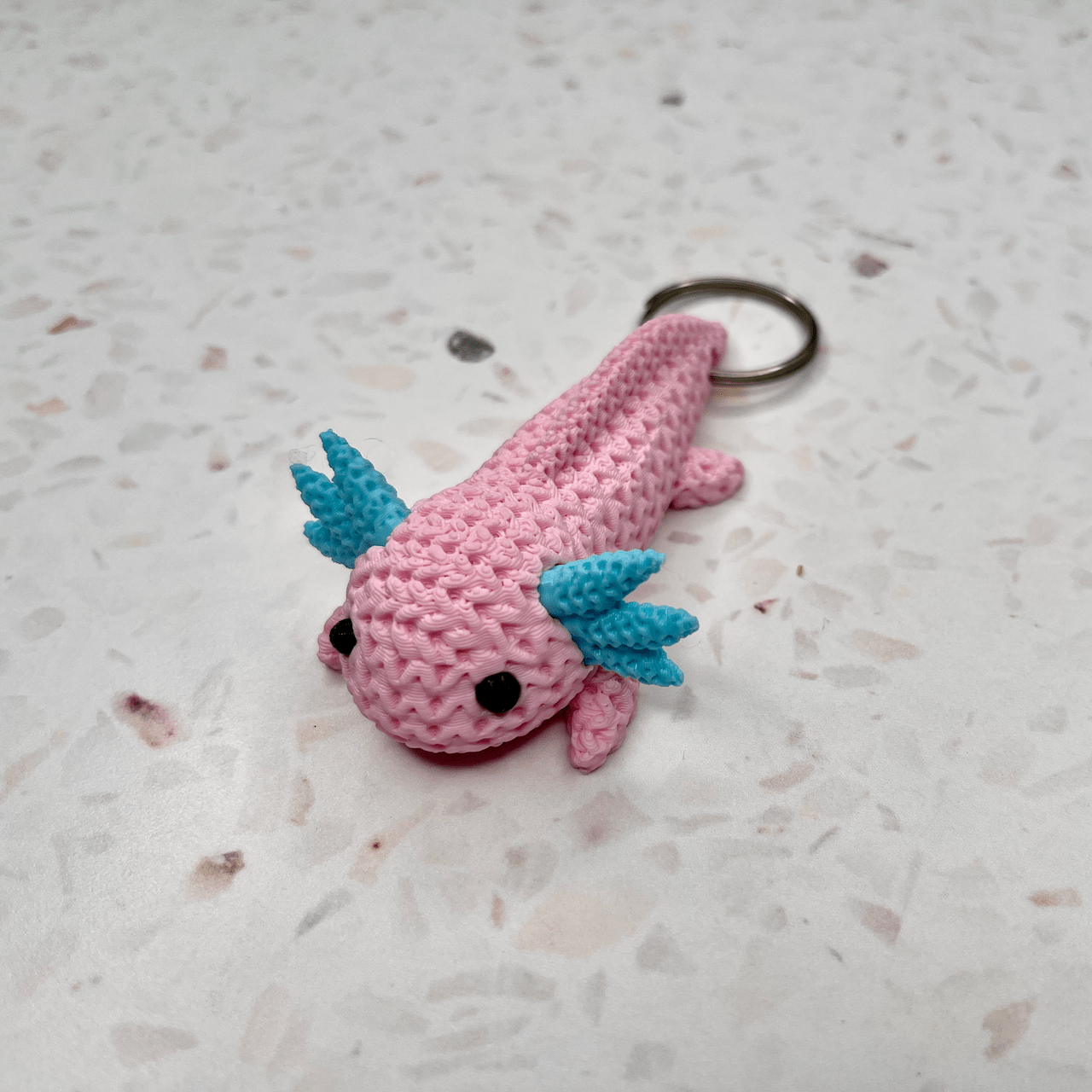 Take the cuteness of an axolotl everywhere you go! These mini axolotl keychains are 3D printed in a mix of fun color combinations and come with a sturdy keyring, perfect for bags, keys, or gifts.