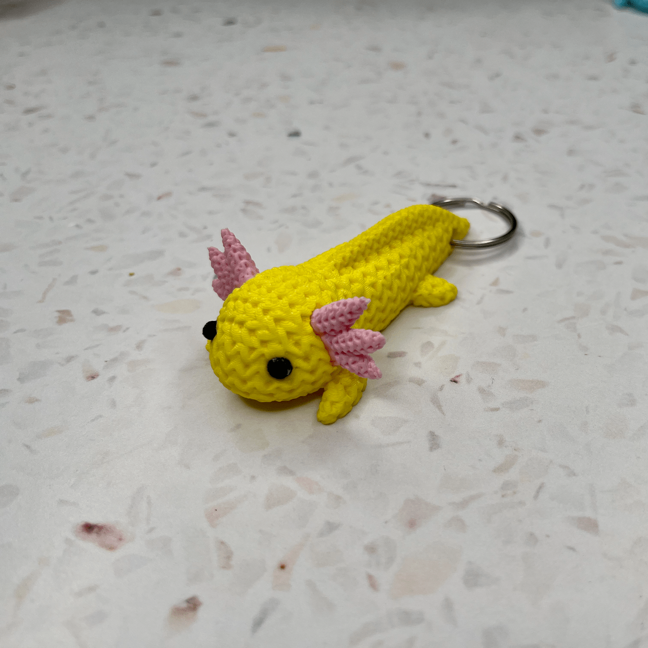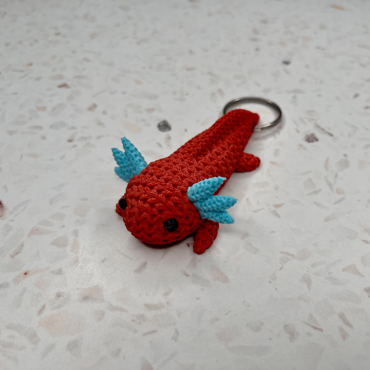 Take the cuteness of an axolotl everywhere you go! These mini axolotl keychains are 3D printed in a mix of fun color combinations and come with a sturdy keyring, perfect for bags, keys, or gifts. Pick your favorite color combo or collect them all!